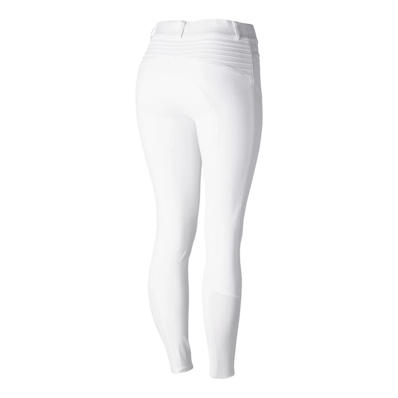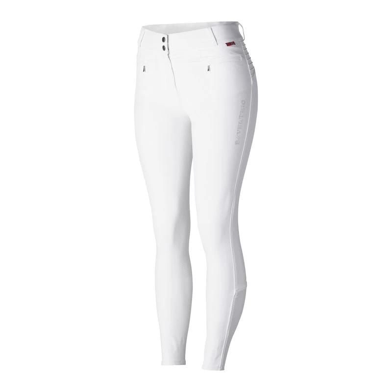 The new B Vertigo Drea breeches make a classic statement. Their great fit with the mid to high waist makes them super flattering. The pleat detail on the back creates a special elegance. The silicone knee patch ensures movability in the saddle. A sparkly crystal logo on the thigh completes the look.