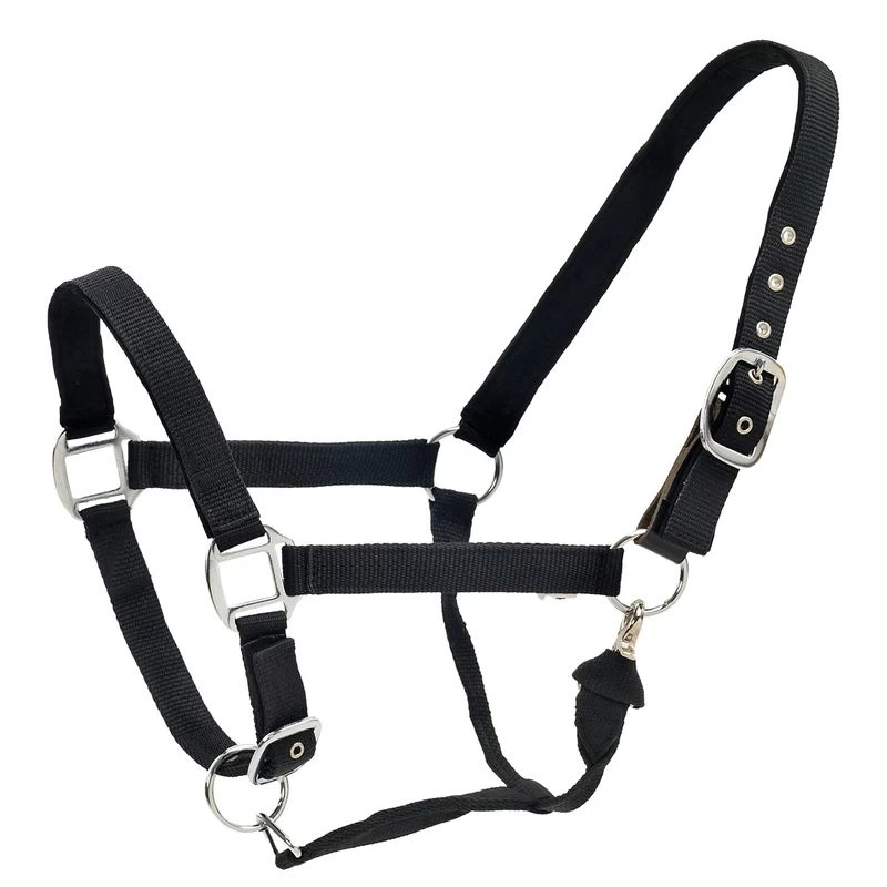 This affordable halter features nubuck padding on the nose and crown, heavy duty zinc hardware, adjustable chin and throat snap. The breakaway tab makes this halter field safe.