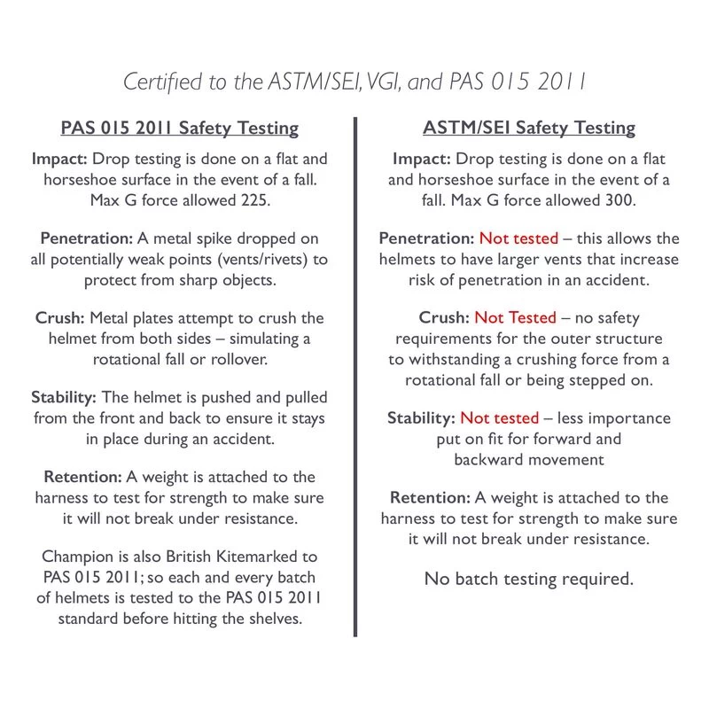 Safety Standard: British PAS 015 2011, VG1, ASTM F1163-15 Style of Fit: Traditional, Deeper fit on the head with a snug feel – there will be some suction when removing the helmet. Head Shape: Round