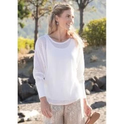 Pretty ballet neckline and dolman sleeves add style perfect for an evening out or at the beach, with hip coverage ideal for leggings or jeans.