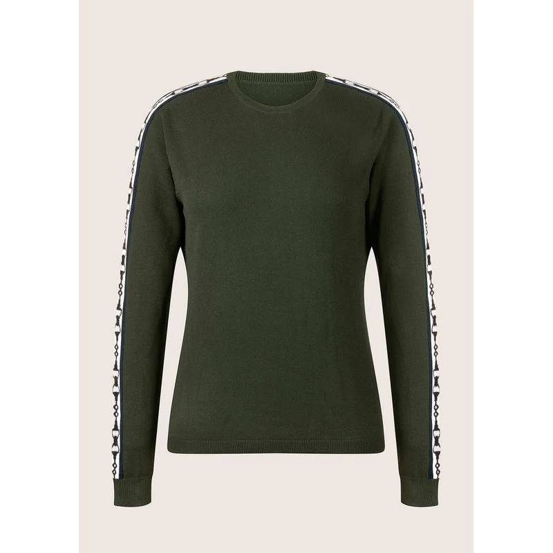 This elevated equestrian sweater sets a high bar for style thanks to its soft knit blend and hip length hem.The snaffle bit pattern down the sleeves showcases your love of horses, while a classic cut fits and flatters all body types.
