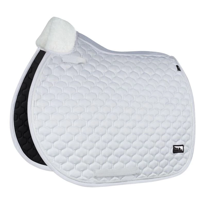 The Fair Play Jet Saddle features soft synthetic fleece at the withers.