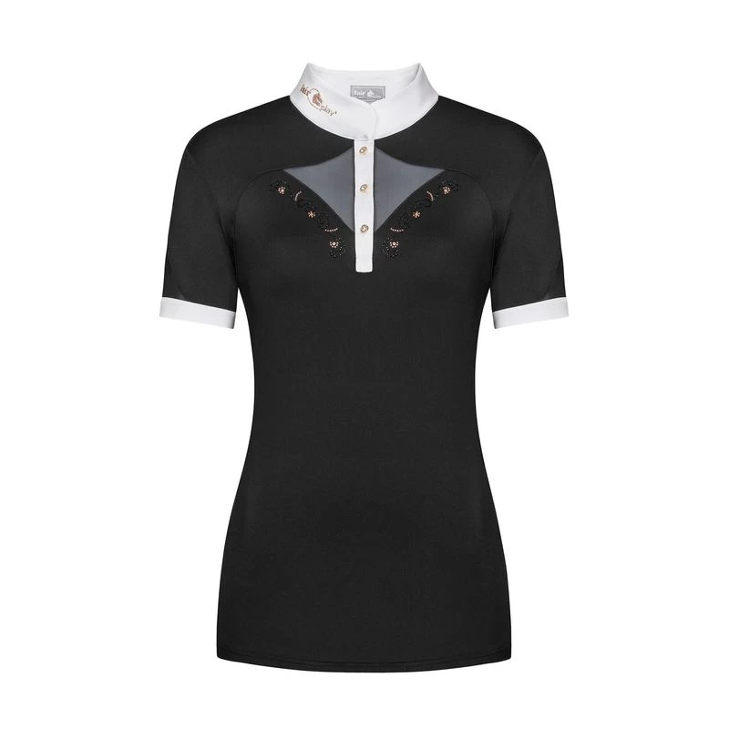 The Fair Play Cathrine Rose Gold Short Sleeve Show Shirt has all the athletic stretch you need, with rose gold decoration adding that extra touch you want.