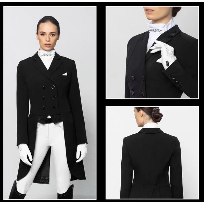 This shad is highly elegant and beautifully tailored. The long tails are lined with synthetic leather and evenly weighted. The points are exchangeable. The body of the coat has mesh lining for improved air circulation, as well as eyelets under the arms. As a finishing touch, the collar, flaps and back are decorated with discreet crystals.