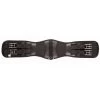Quality leather girth with contoured shaping, elegant fancy stitching, triple elastic at one end, and easy roller buckles