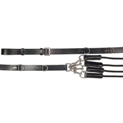 Made of leather and rounded nylon cord this training aid fastens to the extended breast strap with clips from three points; the poll, neck and mouth to form a triangle. This aid is designed to encourage the horse to use his muscles correctly for proper self-carriage. It is useful for flatwork training in a variety of disciplines.