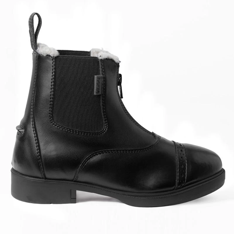 These paddock boots have the look and feel of traditional paddock boots but a quick front-zip means kids are ready to go in an instant. The reliable craftmanship combines quality and a classic style. The soft, synthetic leather-like material is easy to care for and always looks new. Faux fur lining keeps little riders’ feet warm. These boots are a great value for their everyday stable and riding needs with a quality that will last.
