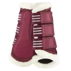 The Horze Lincoln brushing boots are lined with functional neoprene and trimmed with soft faux fur. Sturdy hook-and-loop fasteners keep them in place. Pair with the Lincoln saddle pad (#17396 or #17346) for a full look.
