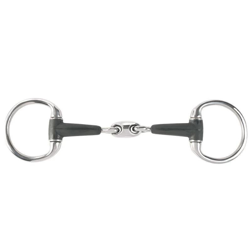 The rubber mouthpiece is mild and a perfect choice for horses with sensitive or delicate mouths that are prone to rubs. The eggbutt style cheekpieces also reduces the risk of pinching. The oval link style of double jointed mouthpiece offers more surface area creating a milder effect and reducing the nutcracker effect of the snaffle mouthpiece. This bit is competition legal for most disciplines where a snaffle bit may be used.
