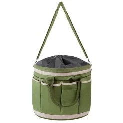 The Horze Sandnes grooming bag is made to fit all of your grooming supplies. The big compartment closes with a draw string. The outer pockets offer extra room for bottles or small accessories. Carry it on two short handles or the long shoulder strap.