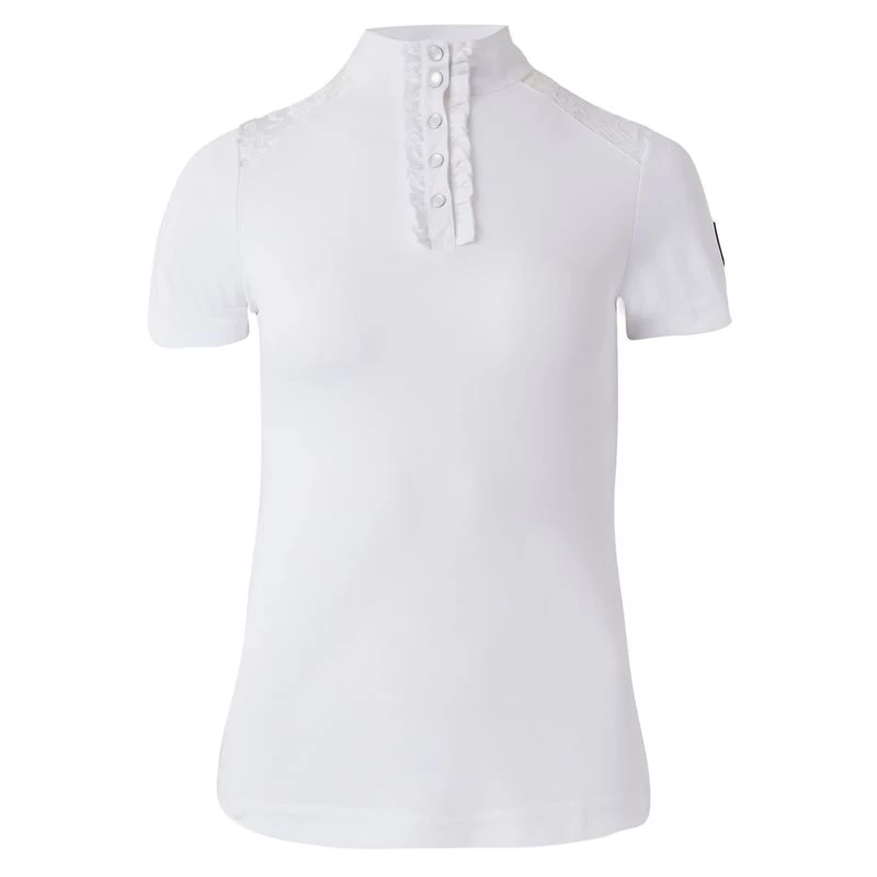 The Horze Sianna show shirt is made from breathable material that will keep you cool. Delicate lace at the shoulders looks elegant, and the buttons at the placket are extra chic. Timeless colors match your show wardrobe, and can easily be paired with your favorite show breeches and jacket.