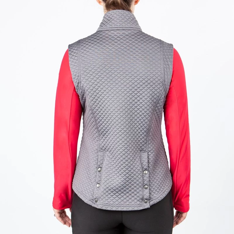 This vest is made of AirLoft “stitch free” quilted fabric that provides unrestricted movement and lightweight warmth. It has an ergonomic fit with zip side pockets that provide ample storage. The double back vents with snaps provides both visual style, as well as freedom of movement in the saddle.