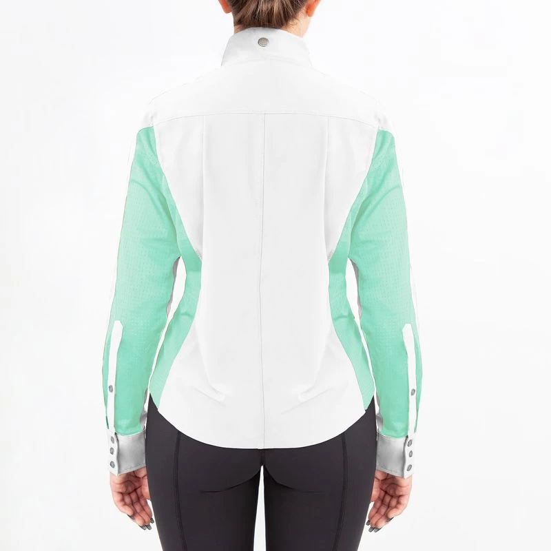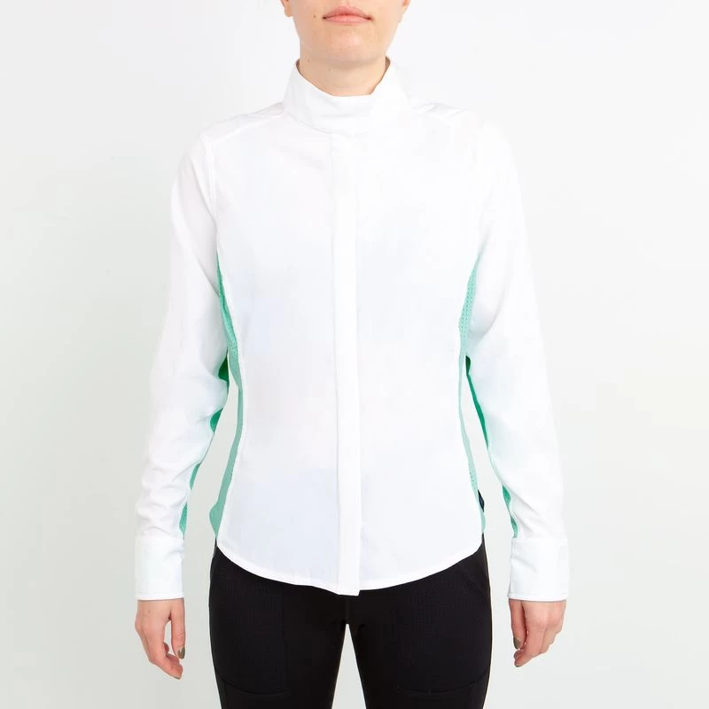 Constructed in lightweight 4-way stretch-woven CoolStretch fabric paired with high stretch IceMesh. Features include a button front, button cuffs, and shoulder darts that provide a beautiful fit and allows for optimum mobility.