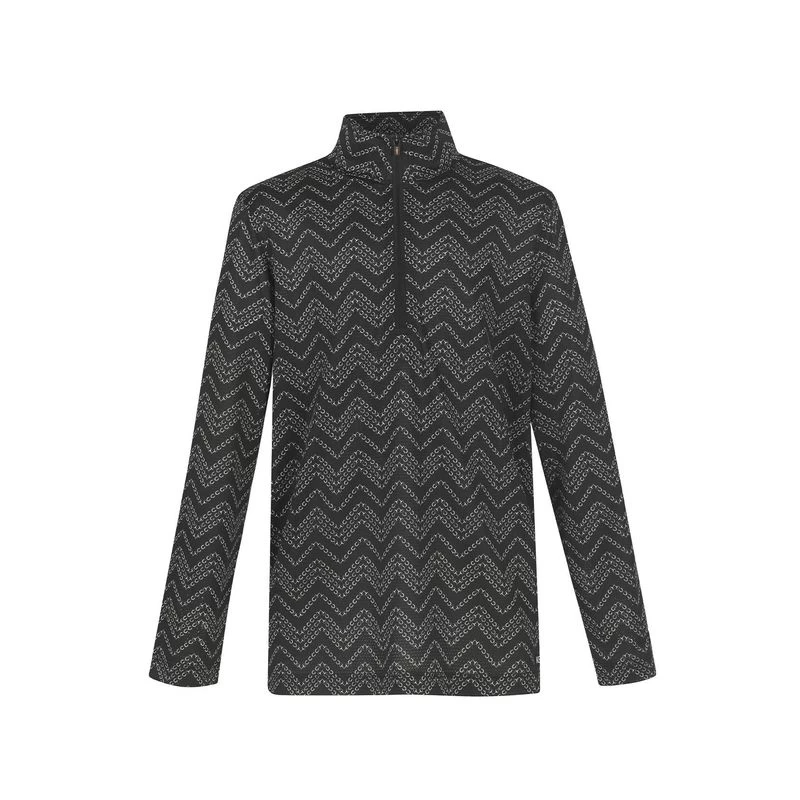 Fun horseshoes wind around the shirt, camouflaging dirt. Ice Fil pulls sweat from the skin, so kids never feel clammy. A perfect UPF+30 layer for girls who ride down south or a fun daily layering solution for northern kids. Features include featherlight fabric with four-way stretch comfort for kids on the go, an eight-inch front zipper for ventilation, and a stock tie loop.