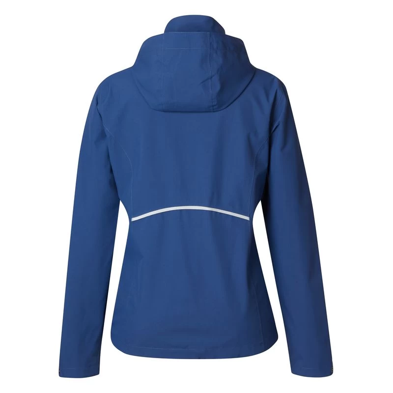 Made for riding, its lightweight and stretchy with pit zips to unzip if a horse takes splashing as an invitation to elevate. Cinch up the drawcord, or wear at hip length and enjoy the double front zip for in-saddle performance. Reflective tape lets others see riders coming through the mist. Stowable hood, two zip pockets.