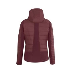 - Hybrid jacket design combines lightweight quilted insulation with stretch-fleece