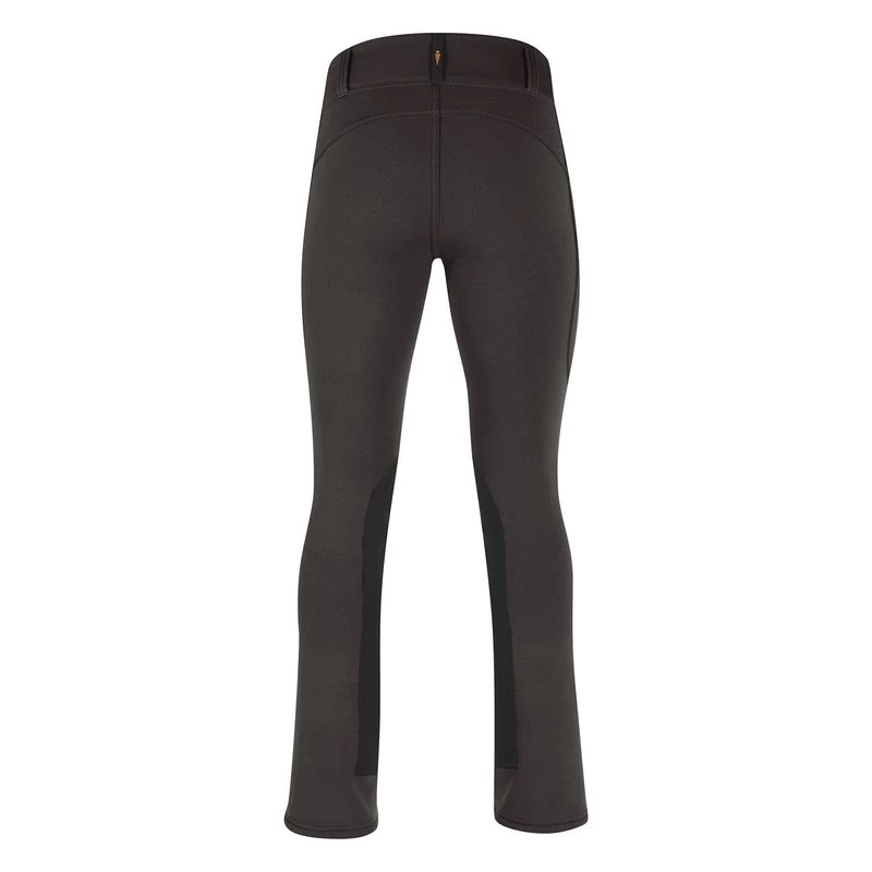 Bootcut styling visually slims and lengthens legs and fits beautifully over bulky winter boots. Extended GripStretch Suede_ patches let riders skip the half chaps. Easy-access side pocket is ideal for small essentials while the 3-inch-wide waistband in the klassic rise with beltloops offers excellent coverage.