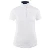 Styled with elegant lines which hugs and flatters all body shapes and sizes. Crisp woven snap collar and white upper torso and sleeves look great under your show coat. Color on lower torso and mesh vented sleeves make a great tech shirt look without the coat.