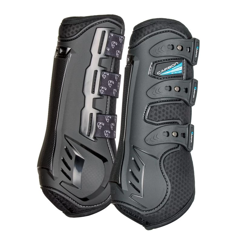 The triple impact support system features a strong TPU outer, an impact absorbing vented neoprene center, and breathable mesh lining. Perforations and mesh increase airflow around the tendons to reduce heat buildup offering max ventilation and quick drying properties. Flex Fit with an ergonomically shaped TPU shell that defends against impact while the flexible structure moves with the horse to facilitate peak athleticism. Elasticated straps with pin fastening for a secure, fast fit.