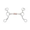 The eggbutt cheeks prevent pinching, while the single joint mouth creates a slight nutcracker action. Copper increases salivation, and most horses like the taste. The thicker mouthpiece is generally considered to be more mild.