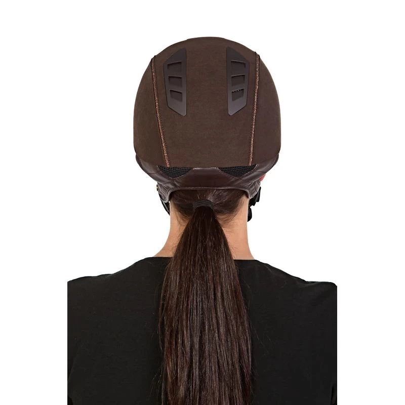 The helmet has a microfiber outer shell and silver-colored glitter piping. The ventilation holes provide good airflow and help keep you cool during riding sessions. The liner lining has our Coolmax technology which keeps you dry and comfortable by wicking away any moisture. The lining is removable and can be easily washed clean with lukewarm water.
